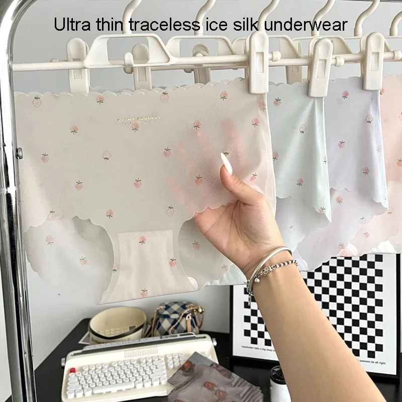 Experience all-day comfort with these ultra-soft, ice silk seamless panties designed for summer. Crafted from lightweight, breathable fabric, they keep you cool even in hot weather. The ultra-thin, second-skin fit ensures no visible lines under clothing, while the playful strawberry print adds a cute, feminine touch. Perfect for daily wear, these briefs offer stretch, softness, and durability for a feel-good lingerie upgrade.