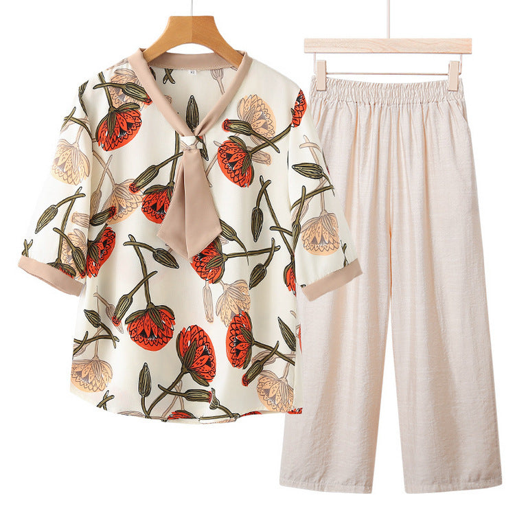 Women's Floral Print Loose Fit Summer Top and Pants Set